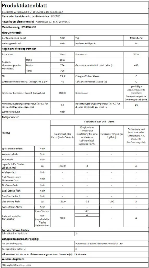 - Jahresenergieverbrauch in kWh: 310 kWh