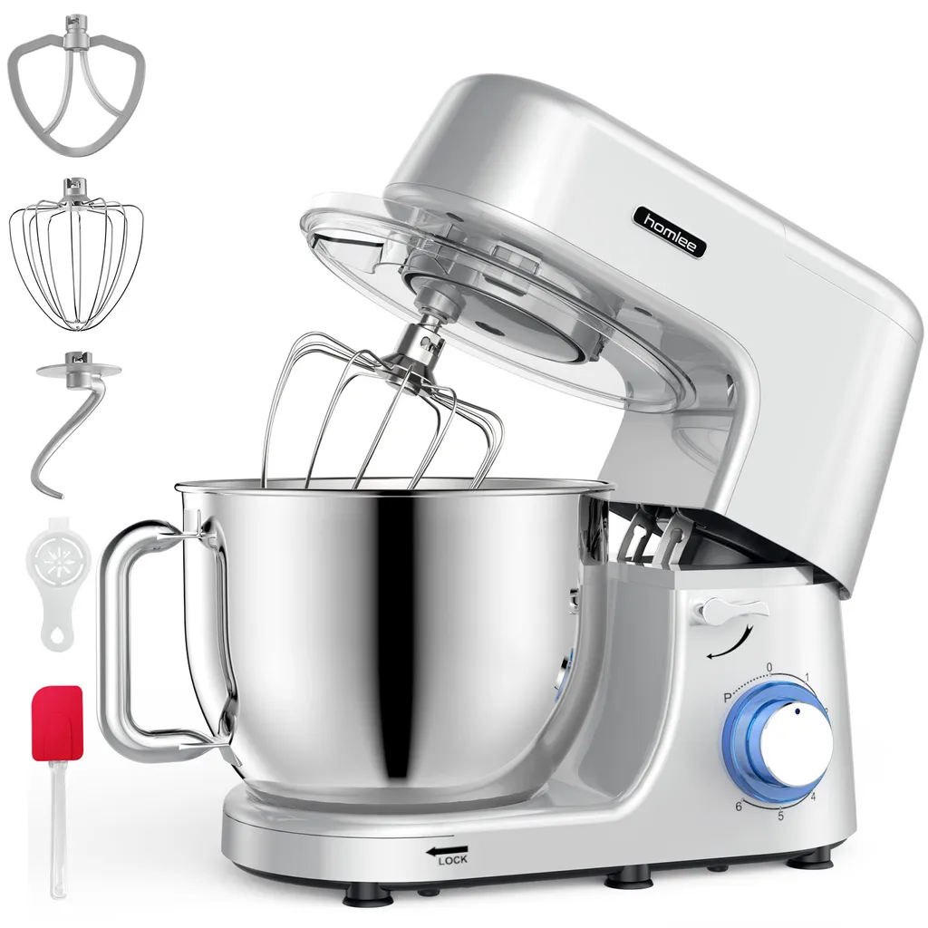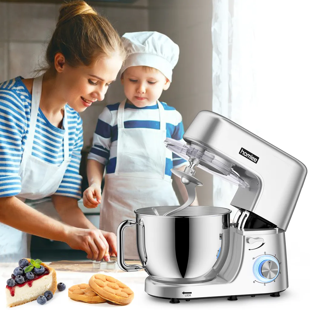 - 【1800 W Leistungsstarker Motor】Leistungsstarke Kochmaschine mit planetarischem Rührsystem! Der Homlee-Standmixer ist mit einem 1800-W-Hochleistungsmotor aus reinem Kupfer und einer 6-stufig einstellbaren Impulsfunktion ausgestattet, die im Vergleich zu anderen Modellen selbst die schwierigsten Aufgaben erledigt, egal ob Sie trockene und nasse Zutaten mischen, Teig kneten oder Sahne schlagen.Alles ganz einfach.