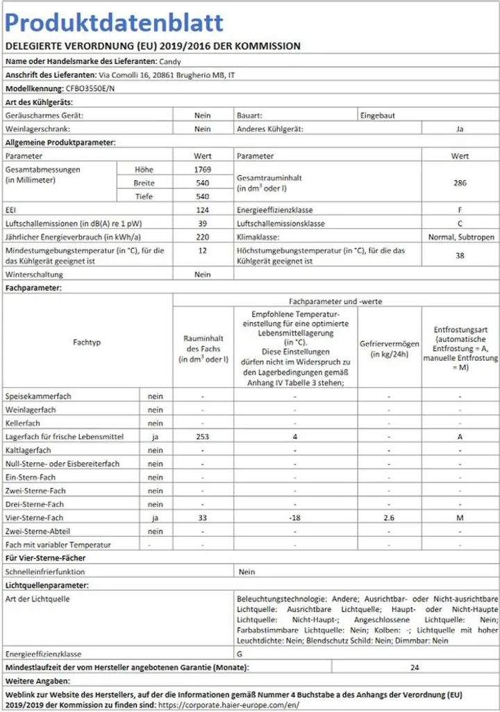 - Gefriervermögen in 24 Stunden: 2,6 Kg