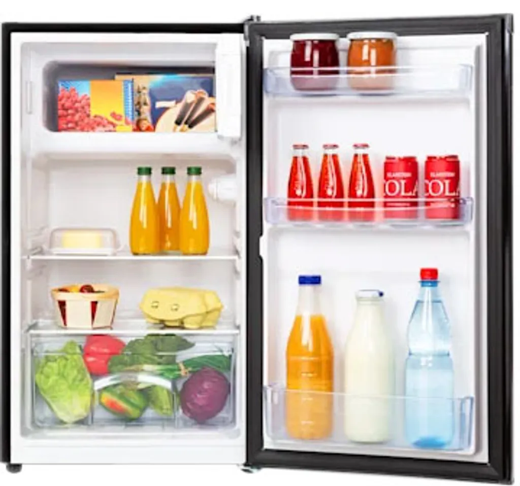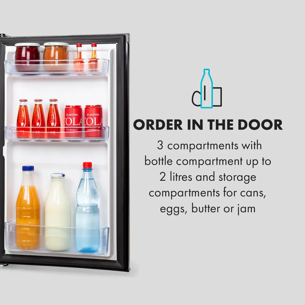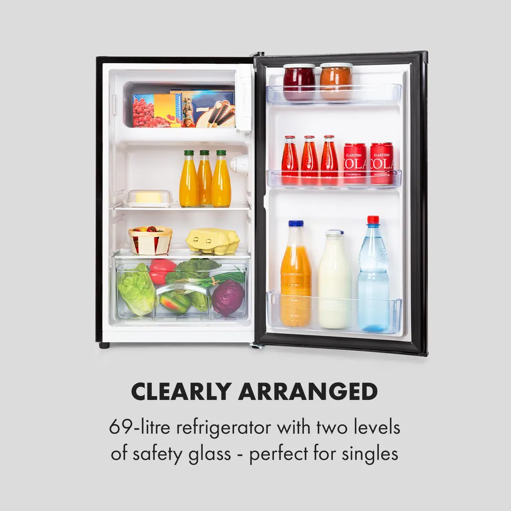 – Übersichtlich: 69-Liter-Kühlschrank mit zwei Sicherheitsglas-Ebenen – perfekt für