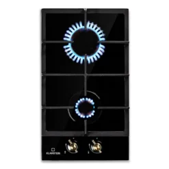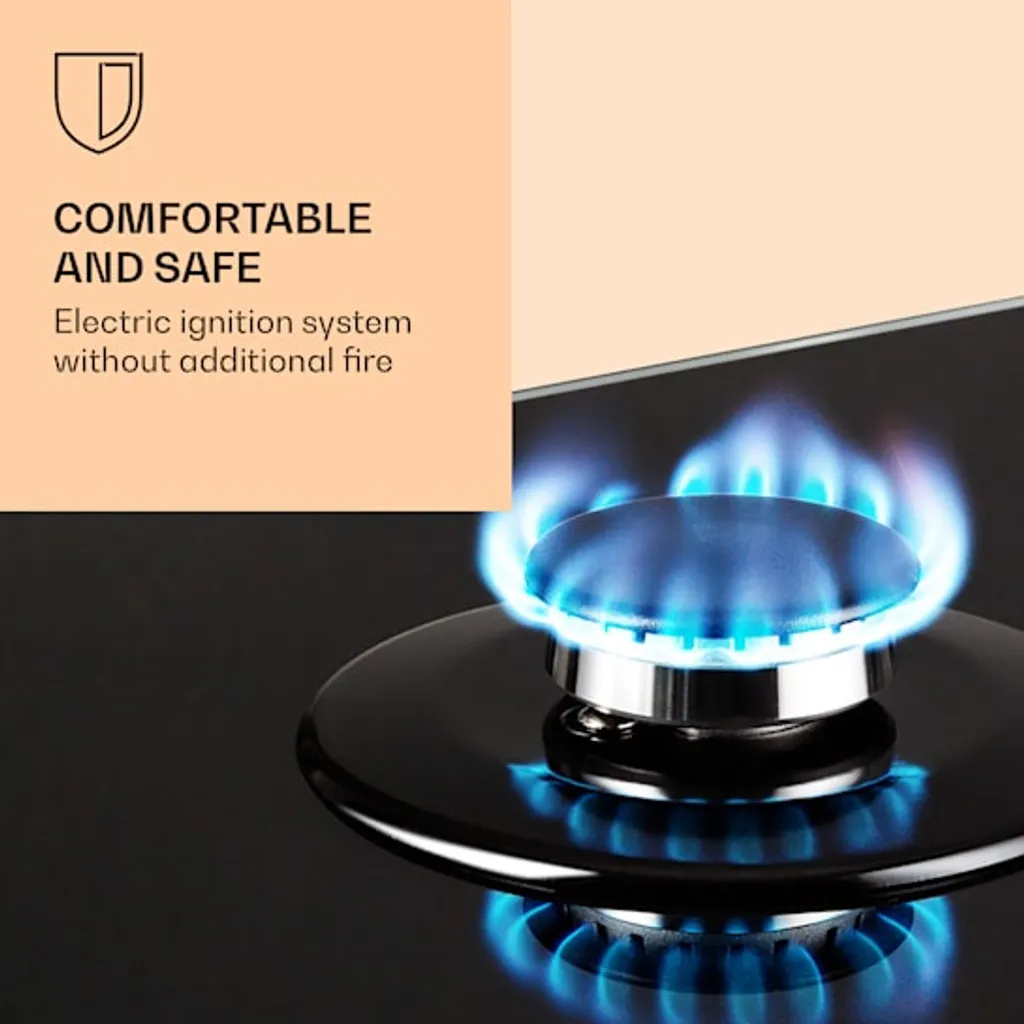 Auf dem platzsparenden Klarstein Victoria Domino Gaskochfeld befinden sich zwei hochwertige Sabaf-Brenner, die mit einer Leistung von 3 kW und 1 kW ordentlich einheizen. Die Brenner verteilen die Hitze gleichmäßig in der Mitte und an den Rändern deines Kochgeschirrs, so wird alles perfekt gegart. Die Bedienung ist dank der selbsterklärenden Symbole an den großen im Retro-Design gestalteten Drehknöpfen absolut intuitiv, die Hitzezufuhr kann während des Kochvorgangs immer wieder direkt angepasst werden. Via SnapJetIgnition entzündest du die Flamme, somit ist kein zusätzliches Feuer nötig. Das abnehmbare Kreuz aus massivem Gusseisen sitzt passgenau und kippsicher über den Flammen. Das Kochfeld ist mit einer gehärteten, pflegeleichten Keramikglas-Beschichtung versehen, die nicht nur gut aussieht, sondern auch besonders leicht zu reinigen ist.