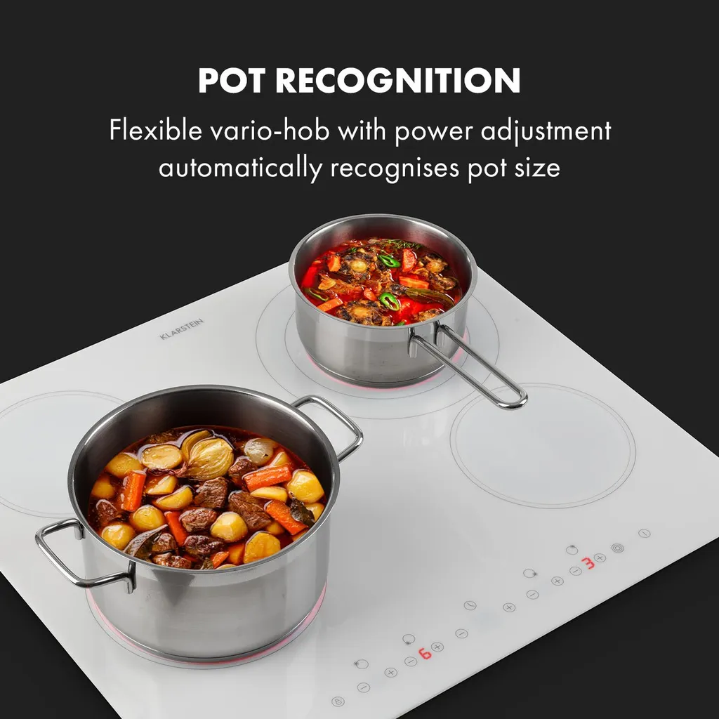– Topferkennung: flexibles Vario-Kochfeld mit Leistungsanpassung erkennt automatisch