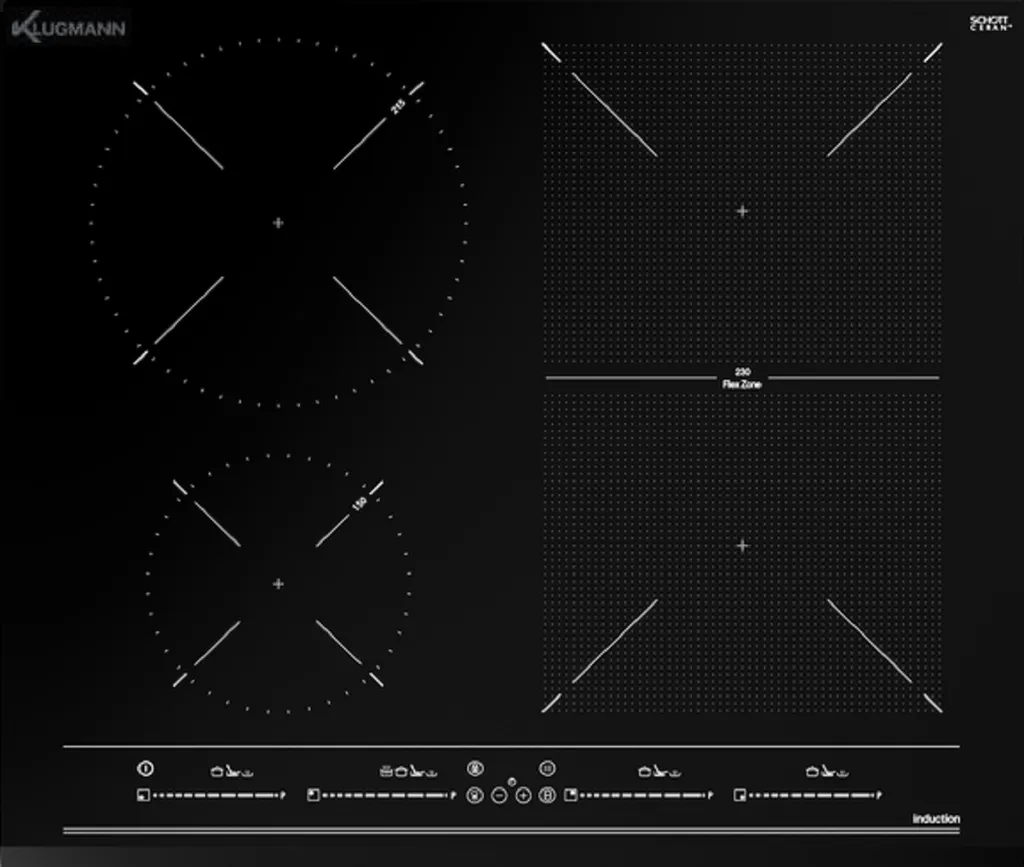 Klugmann Flex-Induktions-Kochfeld KI6000SB, MultiSlider-Touch, Direktfunktionen: Temperaturerhaltung, Kochen Und Auflösen Power Plus, Stop & Go-Funktionen, Digital Timer, 99-Minuten-Timer, Einfach Zu Säubern, Automatische Abschaltung, Warmhaltefunktion Restwärmeindikatoren, Quick Boiling, Acoustic Alarm, Mute Function, Automatic Safety Disconnection (Auto Lock)
