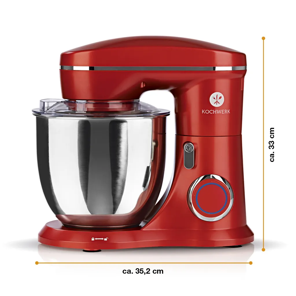 Die Kochwerk Küchenmaschine ist dank des integrierten 1300 Watt Kupfermotors Ihr leistungsstarker und langlebiger Begleiter in der Küche. Egal, ob für Kuchen- und Keksteige, Sahne, Baiser oder sogar schwere Teige – mit den 10 verschiedenen Geschwindigkeitsstufen und dem planetarischen Rührsystem werden die Ergebnisse gleichmäßig und geschmeidig.