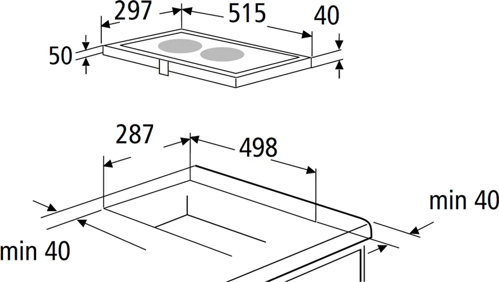 - Gerätemaß Kochfeld (HxBxT): 5,00 x 29,70 x 51,50 cm