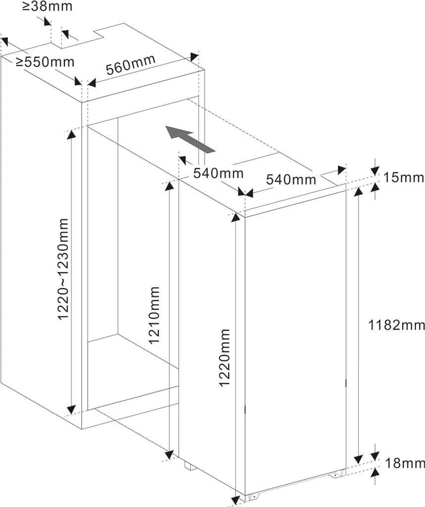 Dieser Einbau-Kühlschrank lässt sich perfekt in Ihre Küche integrieren. Ihre Möbeltüre/Blende wird mit der mitgelieferten Gleitschiene, dem sogenannten Schleppscharnier an dem Kühlschrank befestigt. Dieses ermöglicht einen perfekten und unauffäligen einbau des Kühlschranks.