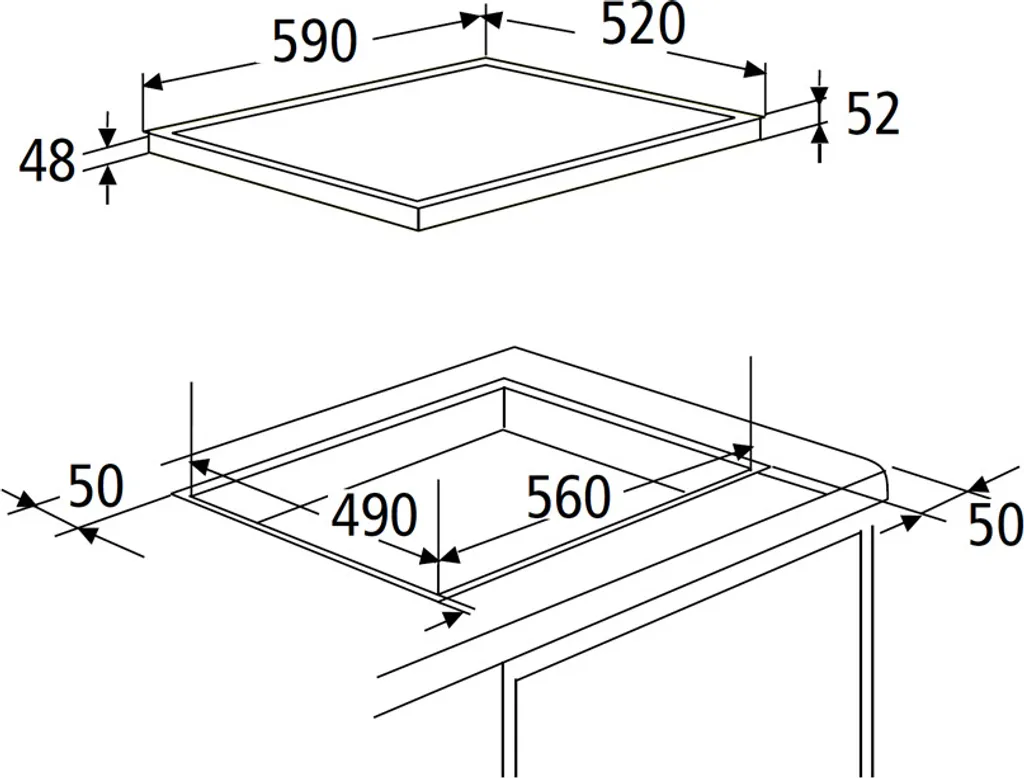 Gerätemaß Kochfeld (HxBxT) 5,20 x 59,00 x 52,00 cm