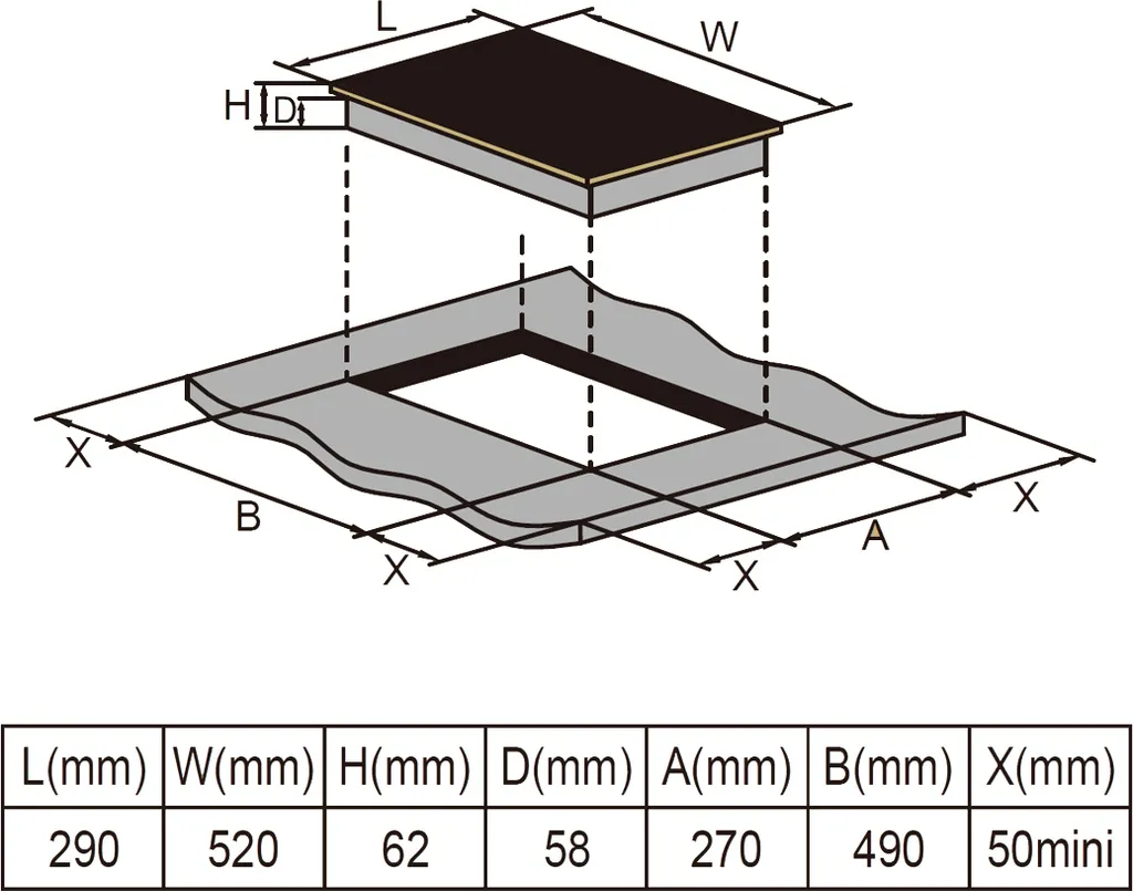 Gerätemaß Kochfeld (HxBxT) 6,20 x 29,00 x 52,00 cm