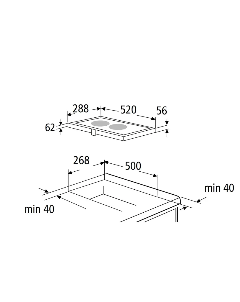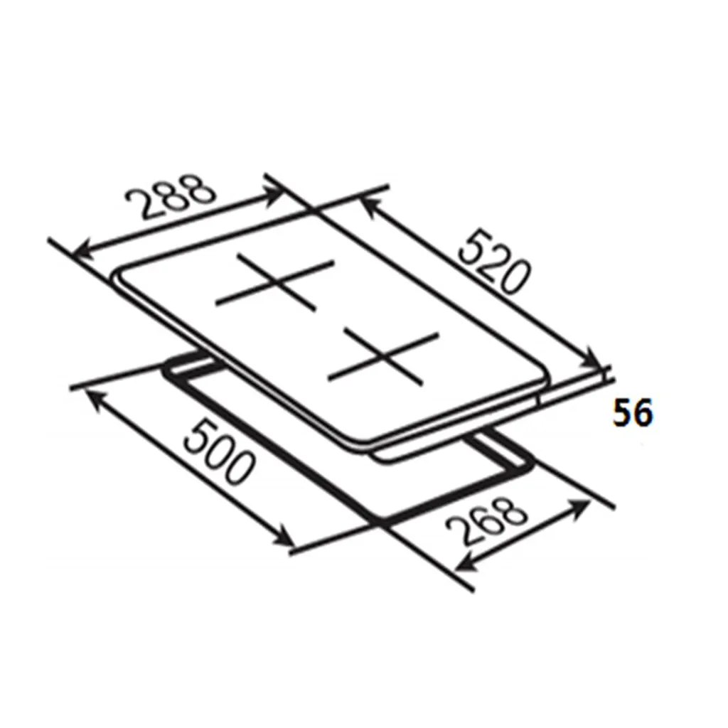- Gerätemaß Kochfeld (HxBxT) 6,20 x 28,80 x 52,00 cm
