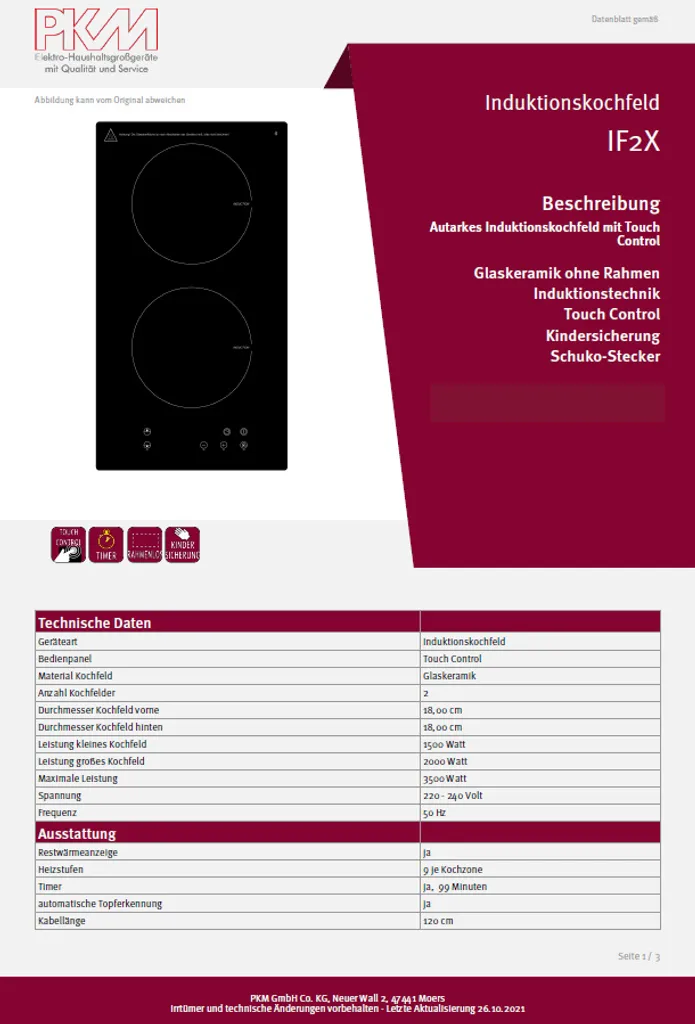 PKM IF2X Autarkes Induktionskochfeld mit TouchControl