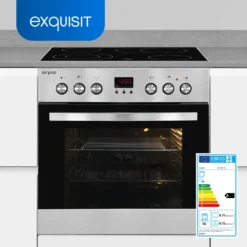 Exquisit EHE 156-2.1 U-Set Einbau-Herd Glaskeramikkochfeld | Ober-/Unterhitze | Inox