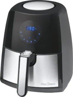 - ✔ FETTARMER ESSEN — Dank der Zubereitung ohne Öl und Fett sind selbst Pommes und Co. weniger kalorienreich. Freuen Sie sich auf fettarme Speisen, die knusprig und lecker in der Heißluft-Fritteuse von ProfiCook zubereitet werden.