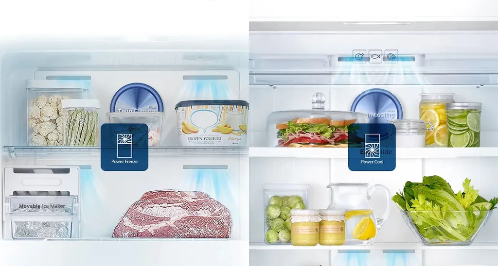 5 Glasregale im Kühlraum, davon 3 höhenverstellbar + 1 ausziehbar/1 x BigBox Obst-Gemüseschubalde, ,3 Türabsteller im Kühlteil, 2 im Gefrierteil, 2 Gefrierfächer, Eiswürfelspender