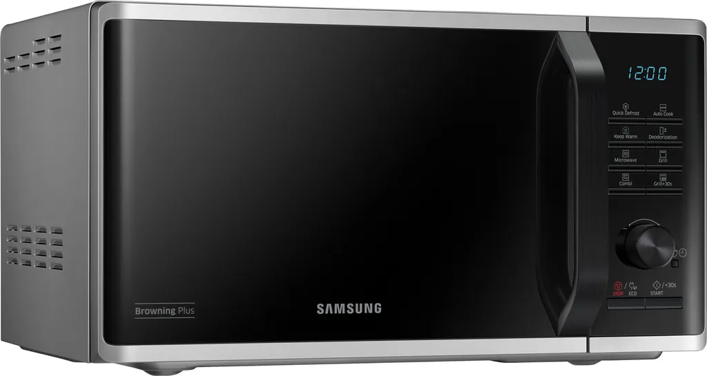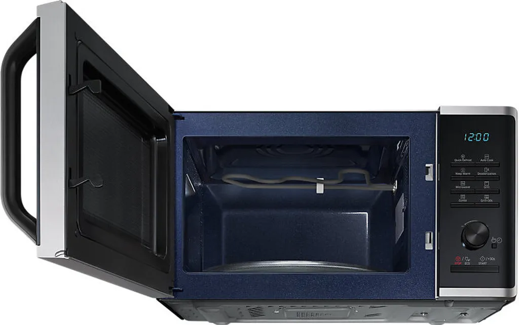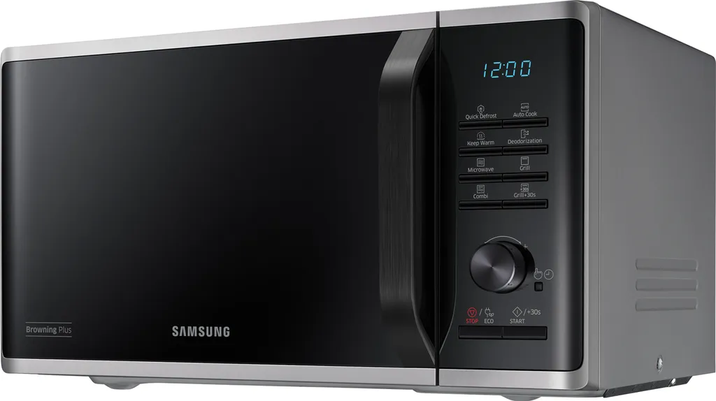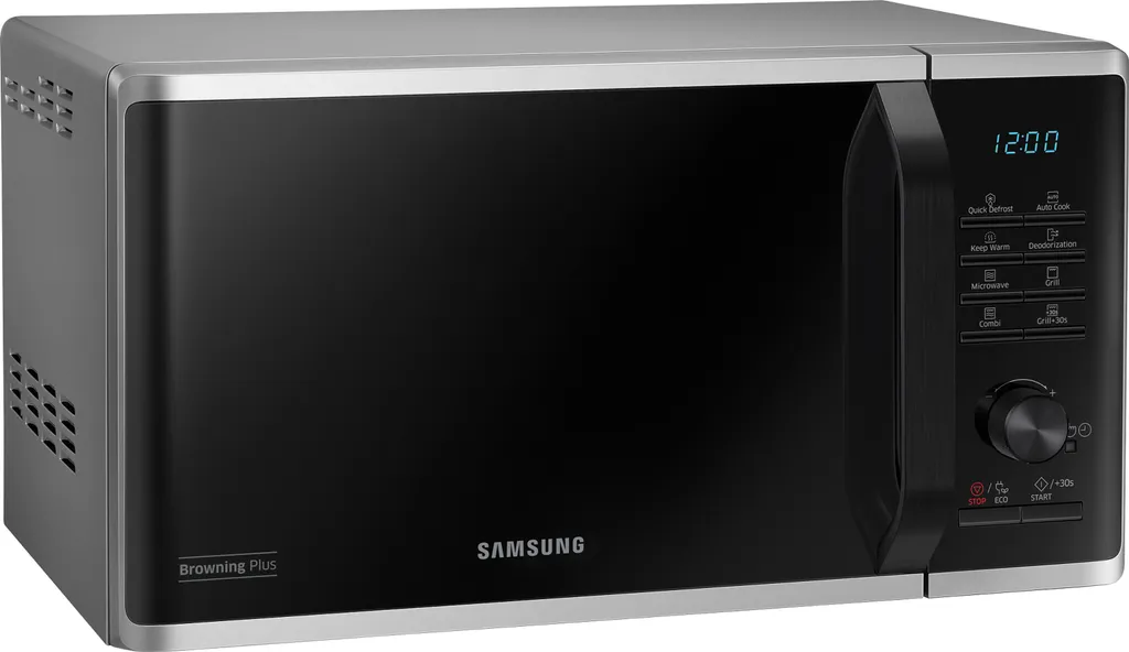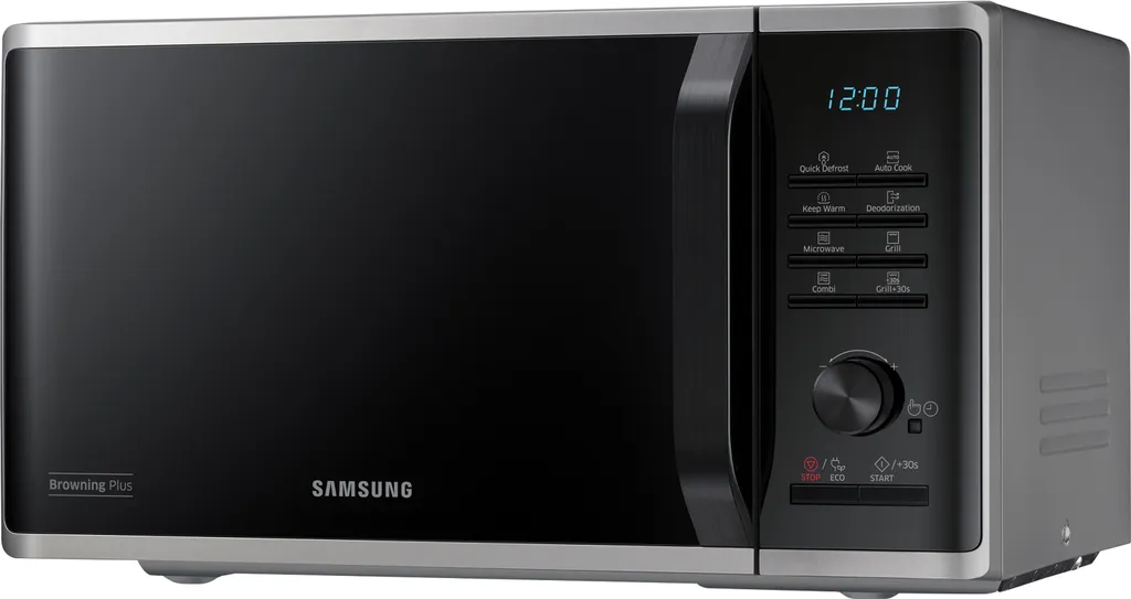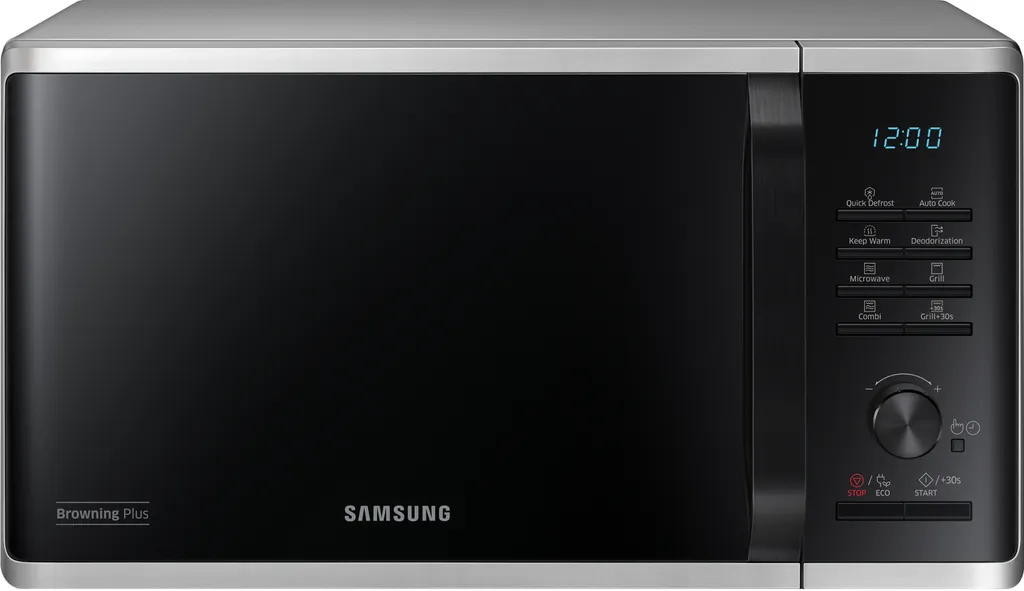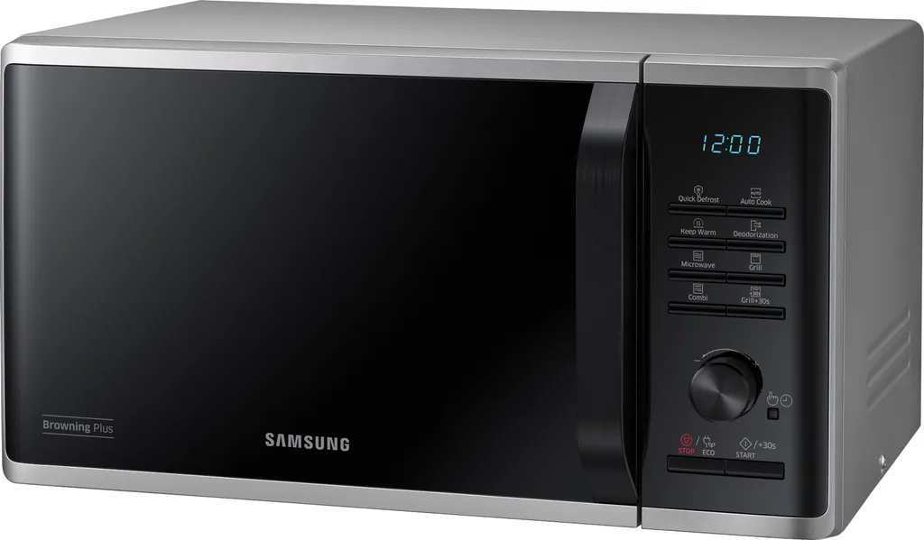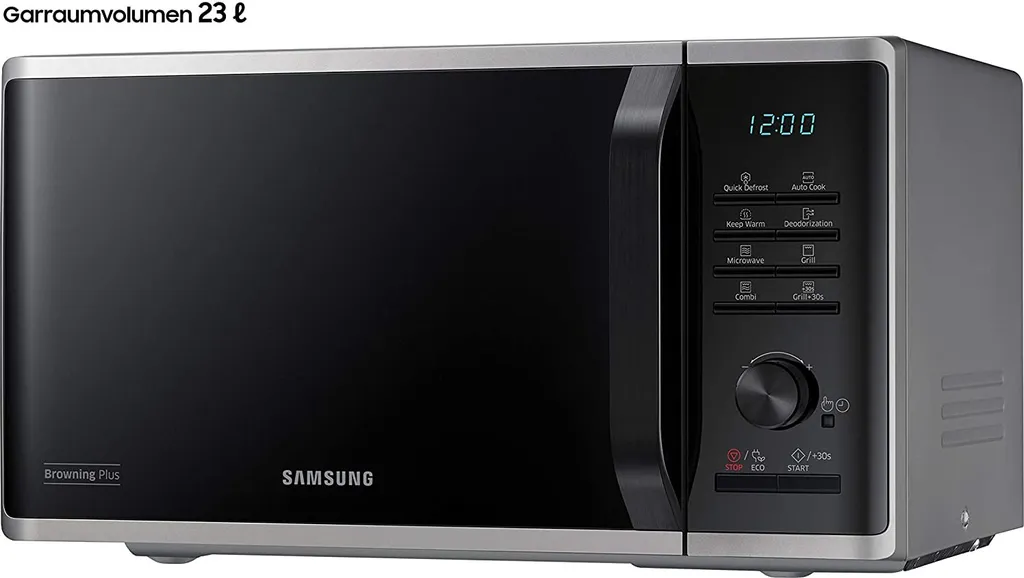 Samsung MG23K3515AS/EG. Geräteplatzierung: Arbeitsfläche, Produkttyp: Grill-Mikrowelle, Innenkapazität: 23 l. Anschlusswert: 1100 W, AC Eingangsspannung: 230 V, AC Eingangsfrequenz: 50 Hz. Breite: 489 mm, Tiefe: 392 mm, Höhe: 275 mm