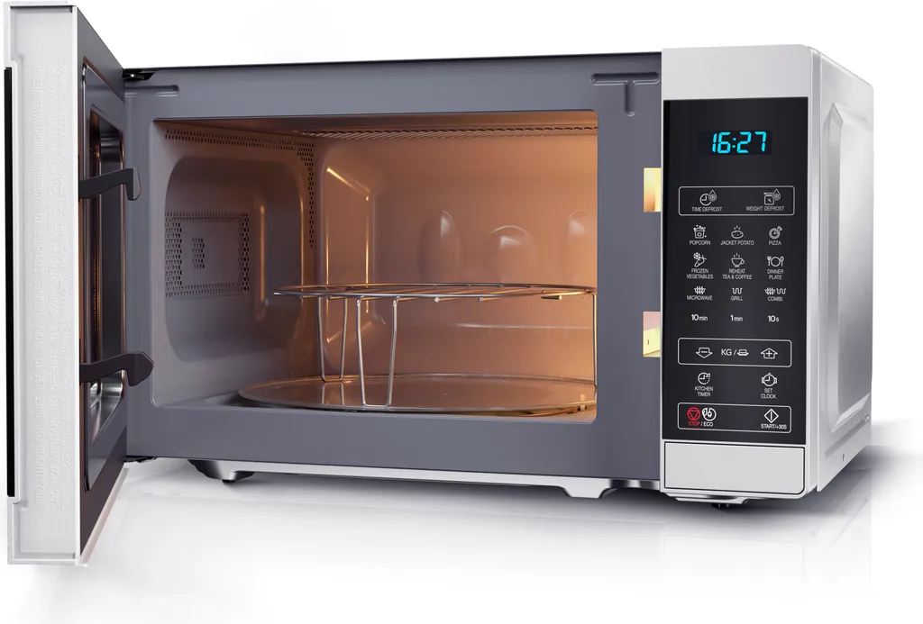 Mit einem Fassungsvermögen von 20 Liter können Sie ganz einfach und schnell Speisen für mehrere Personen zubereiten. Zusätzlich erhalten Sie einen Drehteller (25,5 cm Ø) und einen Grillrost, mit dem Sie das perfekte Grillergebnis erzielen.