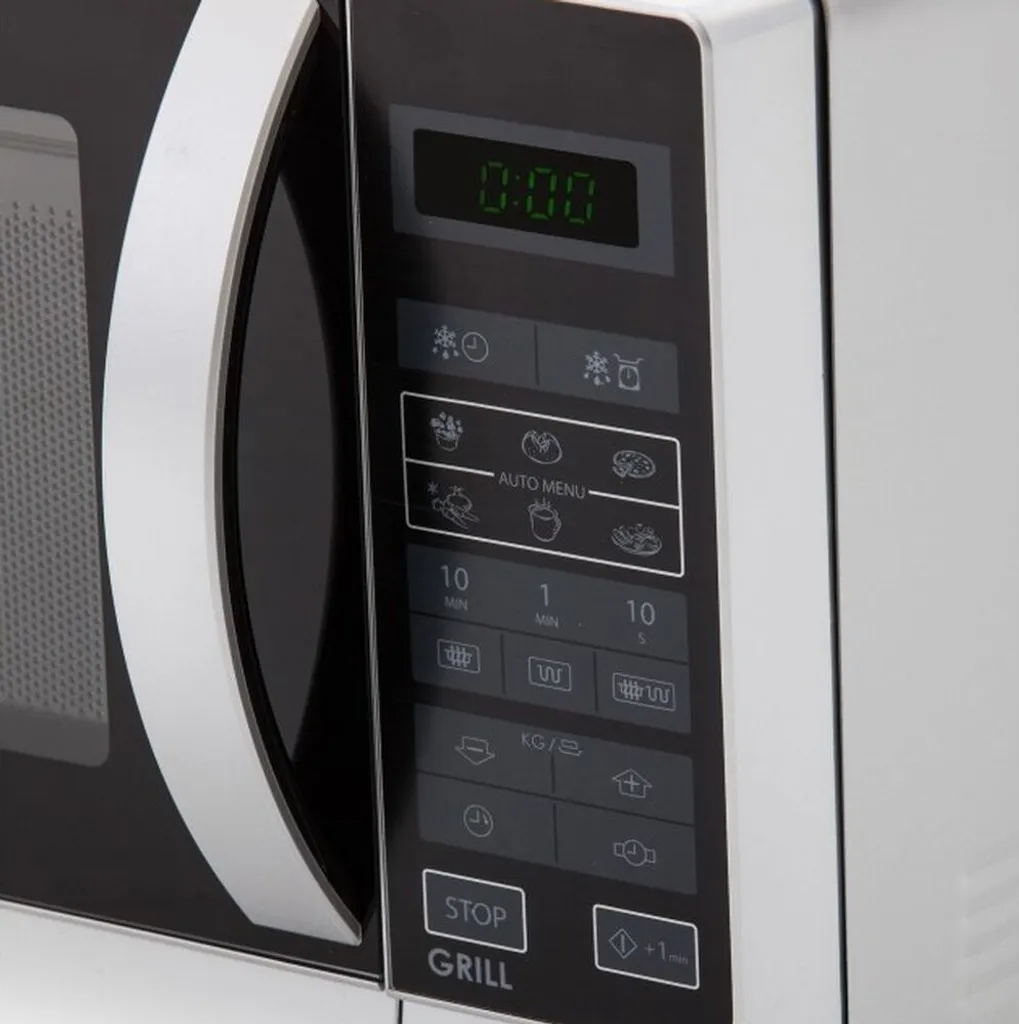 Mikrowellenherd mit Grill (2-in-1) mit Touch-Bedienung und LED-Anzeige. Kombiniert alle Vorteile der Mikrowellengeschwindigkeit mit dem Grill, der Speisen braun und knusprig macht.