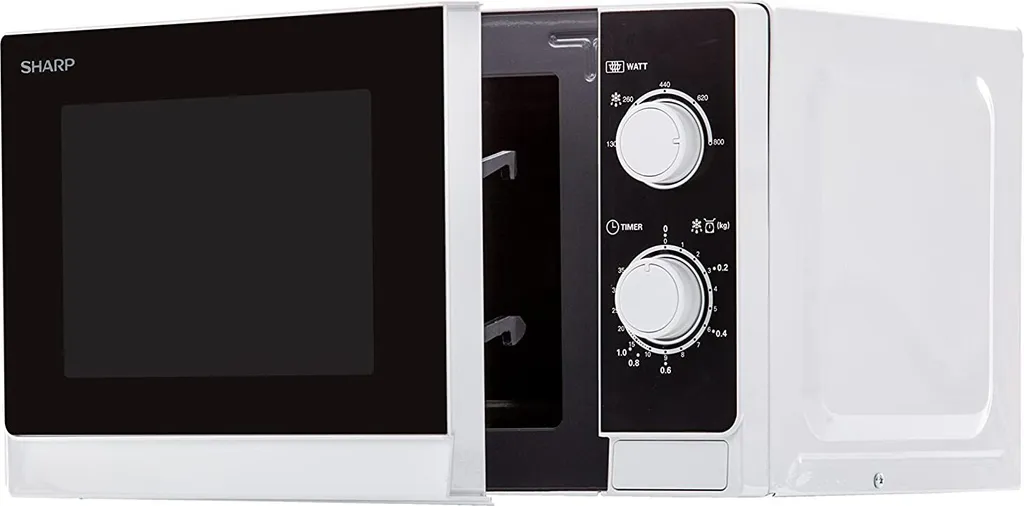 Die Firma Sharp bietet hier mit der R200WW eine 800 W starke Mikrowelle mit 5 verschiedenen Stufen zum Auftauen, Erwärmen oder Erhitzen und einen 20 Liter großen Garraum. Die Garzeit lässt sich bis zu 35 Minuten einstellen, somit lassen sich beispielsweise Speisen langsam und schonend auftauen. Der 25,5 cm große Glasdrehteller bietet genug Platz um seine Speisen zu platzieren. Durch den lackierten Innenraum lässt isch die Mikrowelle einfach reinigen. durch den Druckknopf unterhalb des Timers lässt sich die Tür problemlos öffnen.