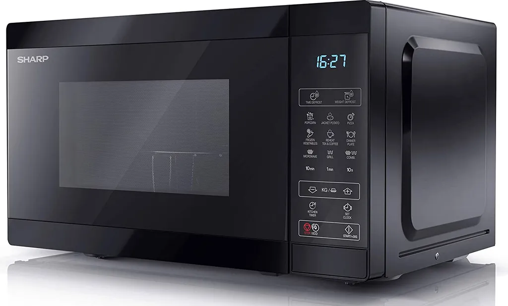 Großzügiges Mikrowellengerät von SHARP in zeitlosem Design: Ob Auftauen, Erwärmen, Grillen oder Garen, das Gerät eignet sich ideal für schmackhafte Fleisch- und Fischgerichte, Gemüse oder das Zubereiten von Popcorn.