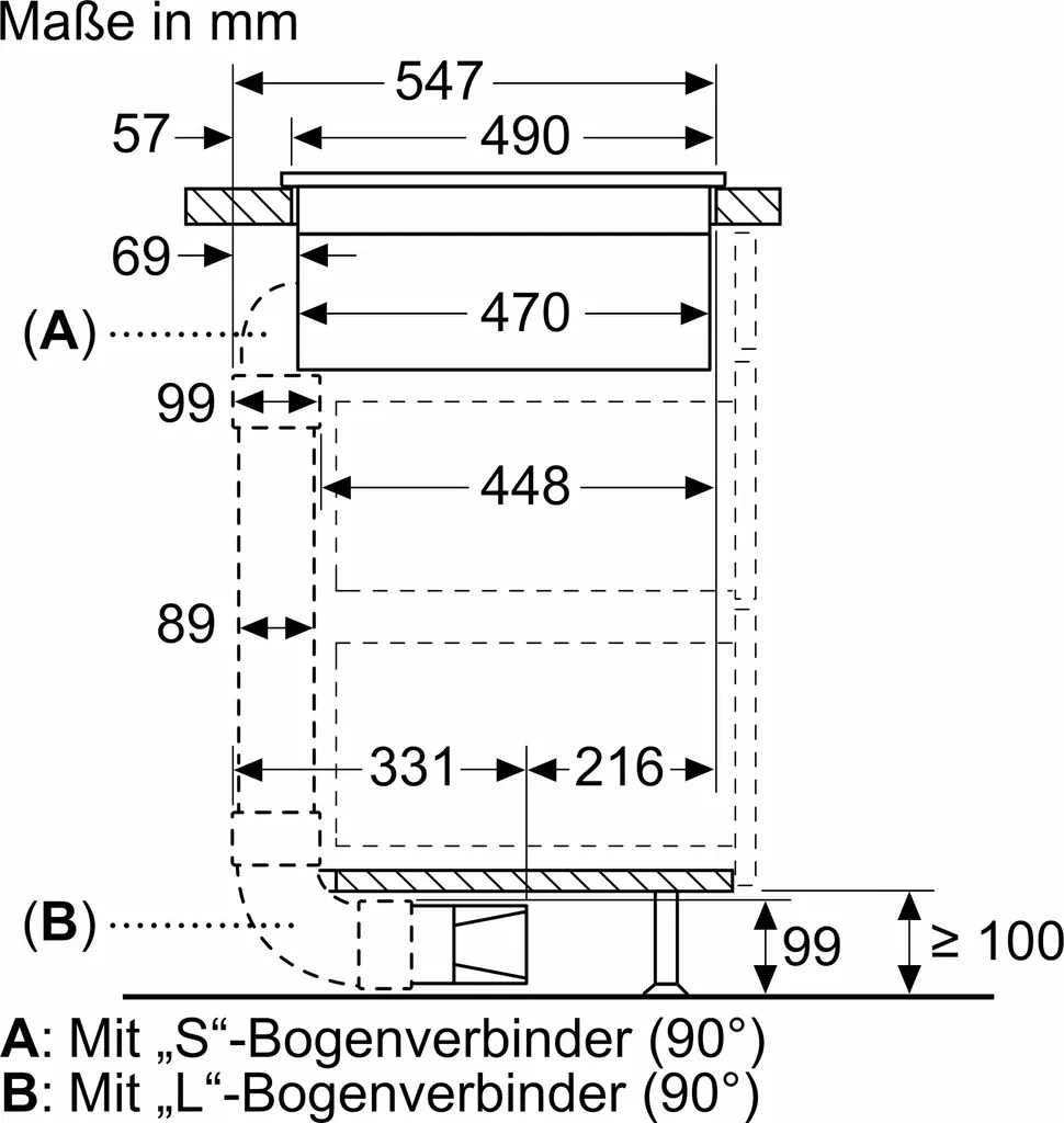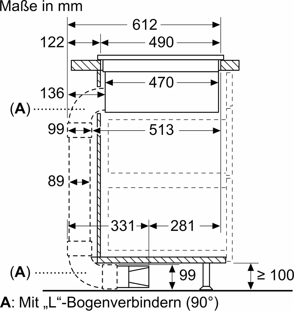 | Stärke Arbeitsplatte | mind. 16 mm |