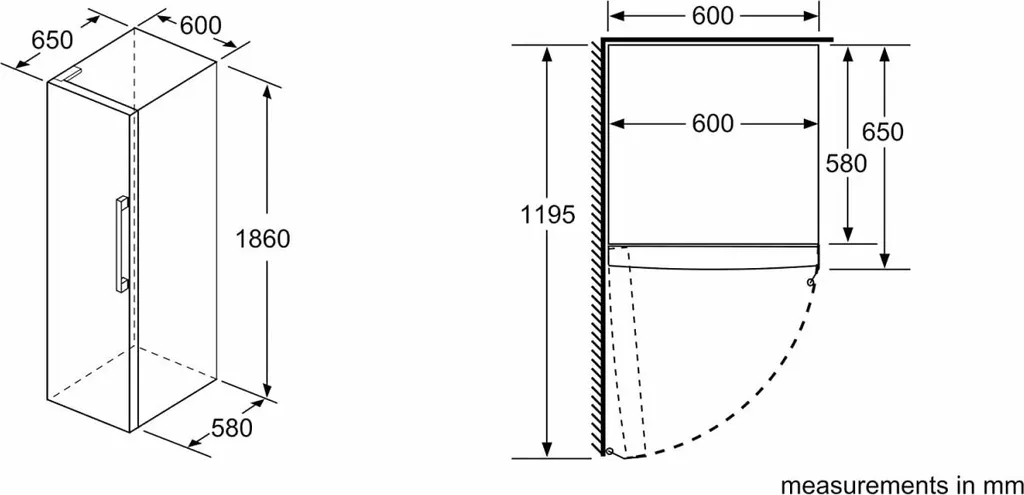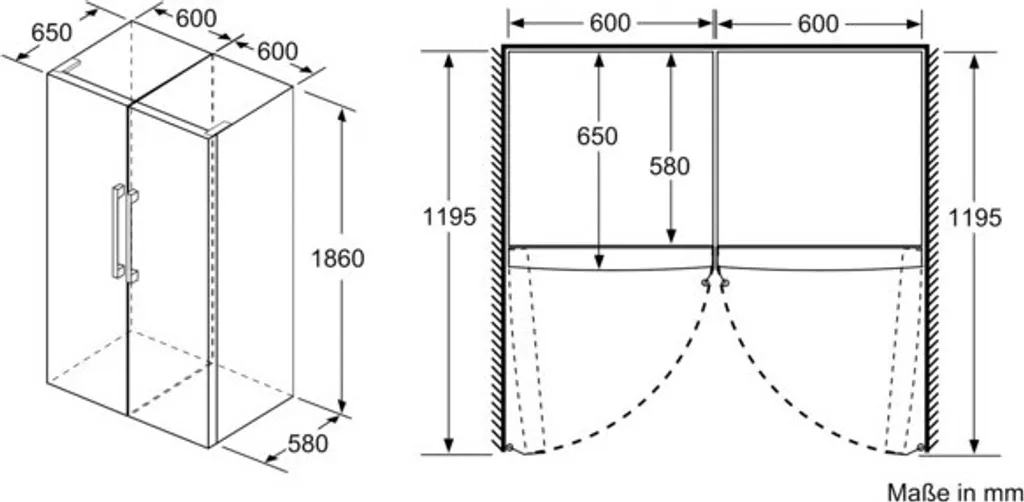 Gerätemaße ( H x B x T): 186.0 cm x 60.0 cm x 65.0 cm