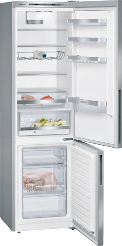 Bewahren Sie Ihre Einkäufe stilvoll mit dieser Kühl-Gefrierkombination KG39EAICA von Siemens auf. Sie besitzt ein Gesamtfassungsvermögen von 337 Litern, das heißt, er fasst bis zu 18 Einkaufstüten voller Lebensmittel. Dieses Modell verfügt über die ausgezeichnete und ist damit umweltfreundlicher und schont Ihre Strom. Das Modell wird mit einer praktischen hyperFresh-Schublade geliefert, die sich perfekt für Fleisch und Fisch eignet, da sie die Lebensmittel auf einer niedrigeren Temperatur hält als der Rest des Kühlschranks. Dadurch bleiben Aromen und Nährstoffe erhalten, sodass die saftigen Thunfischsteaks und Rinderfilets länger halten.