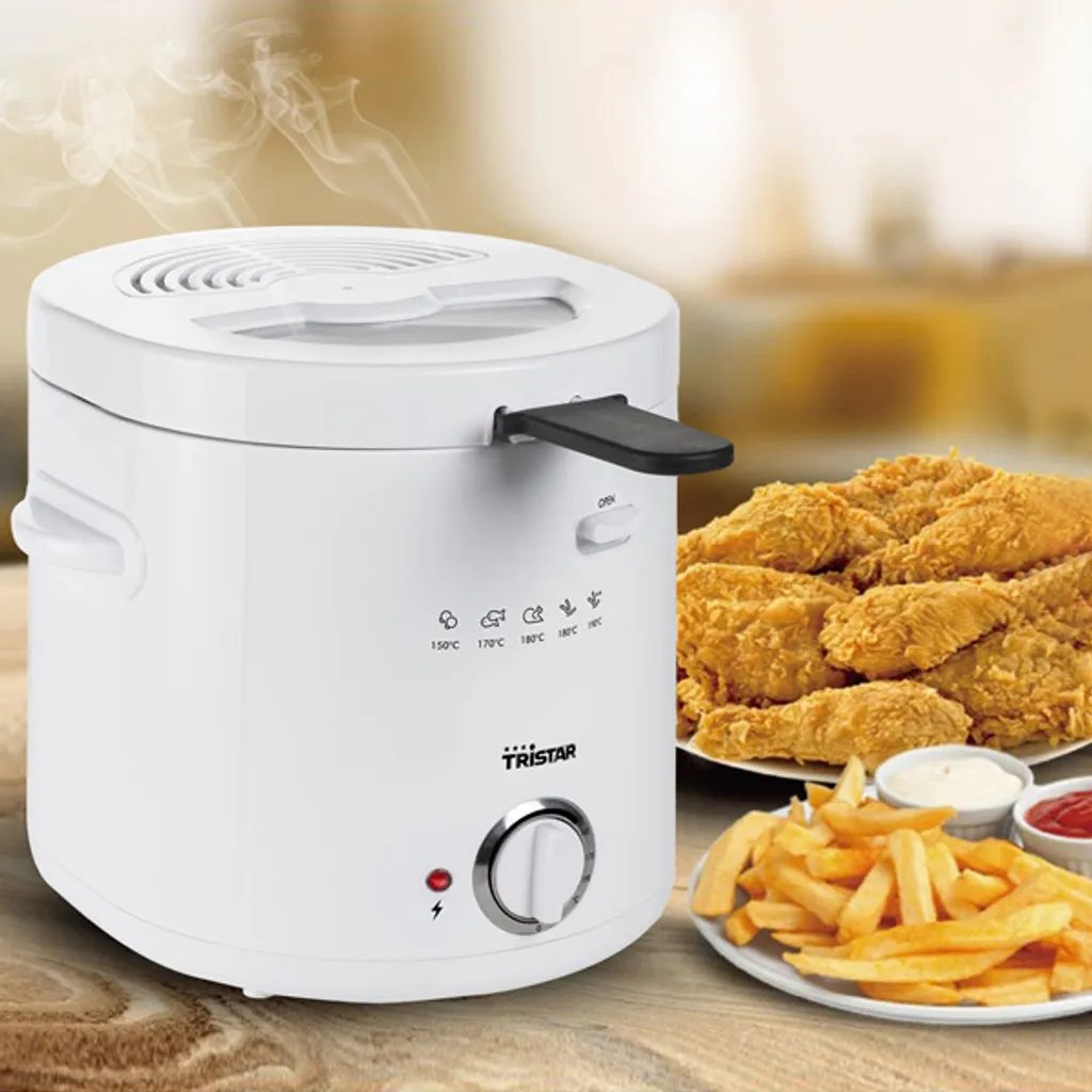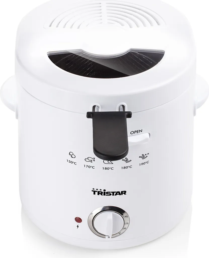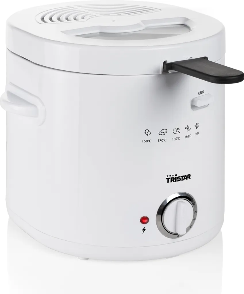Die Tristar-Fritteuse hat 1,5 l Fassungsvermögen und ist sehr kompakt. Damit ist sie für kleinere Haushalte perfekt geeignet. Der Klappgriff erleichtert es, die Fritteuse nach Gebrauch wegzustellen, und mit den integrierten Handgriffen lässt sie sich leicht transportieren. Die Cooltouch-Außenfläche stellt sicher, dass die Fritteuse von außen nie zu heiß wird.