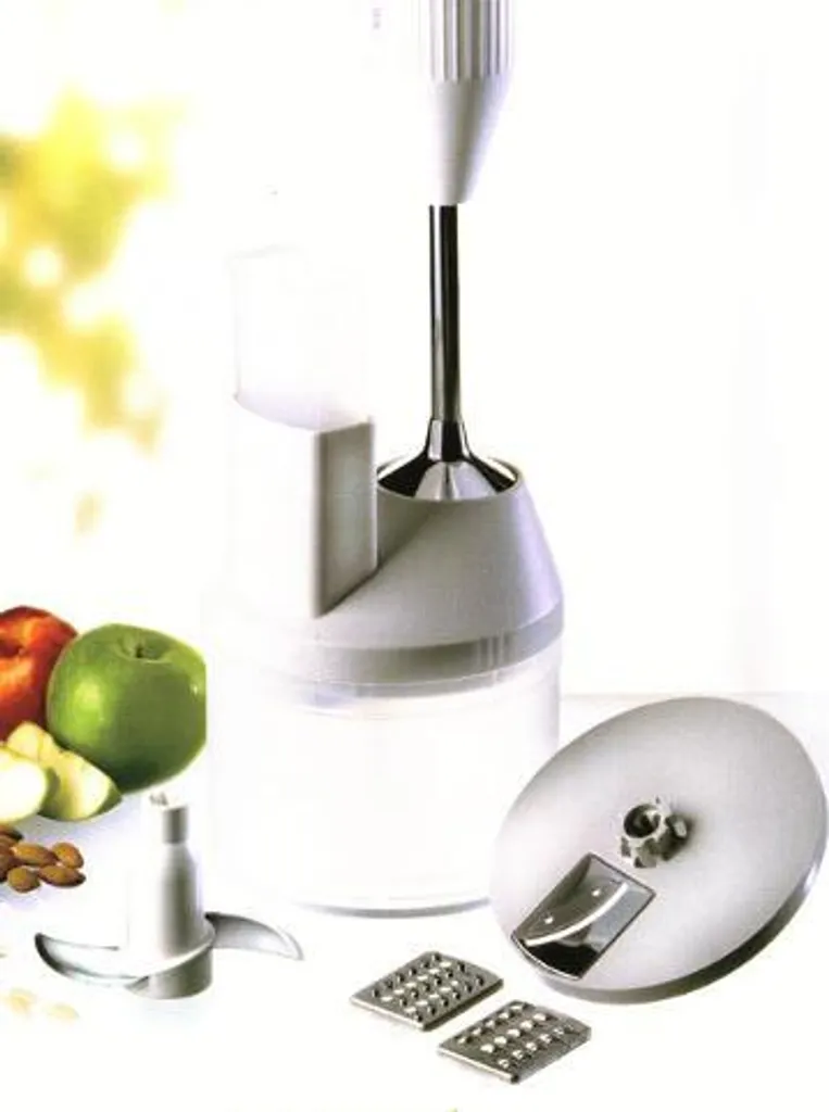 Universal Zerkleinerer perfekt auf ESGE-Zauberstab abgestimmt. Unentbehrlich in der Küche zum: Zerkleinern von Fleisch, Fisch, Kräutern, Babynahrung… Raspeln , Reiben von Nüssen, Käse (Parmesan) , Meerrettich…. Schneiden von Obst und Gemüse in Scheiben…. Transparenter Stopfer. Sämtliche Teile (außer Getriebeaufsatz) spülmaschinengeeignet. Zubehör: 1 Trägerscheibe. 1 Raspelscheibe Nr. 2 fein. 1 Raspelscheibe Nr. 3 grob. 1 Schneidscheibe Nr. 4 fein. 1 Hackmesser aus Edelstahl mit Messerschutz. 1 patentierter Einlegeteller. Sonderzubehör: Raspelscheibe Nr. 1 fein. Schneidscheibe Nr. 4 grob. Farbe grau , weiß.